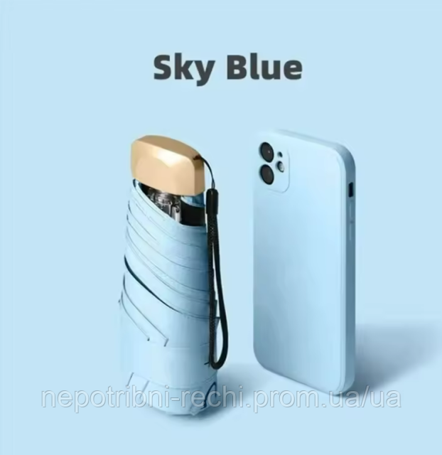 Міні-парасолька  кишенькова від сонця, дощу, із захистом від УФ-ультрафіолету, в чохлі зонт легкий зонтик в сумочку дитячий зонтик