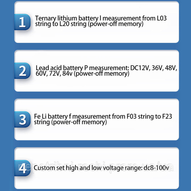 8. Вимірювання напруги LiFePO4 акумулятора F від серій F03 до F23 (пам'ять про збій живлення)