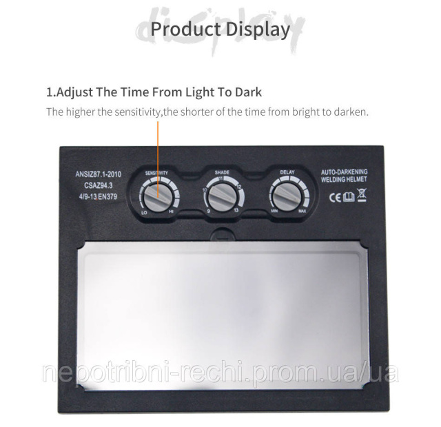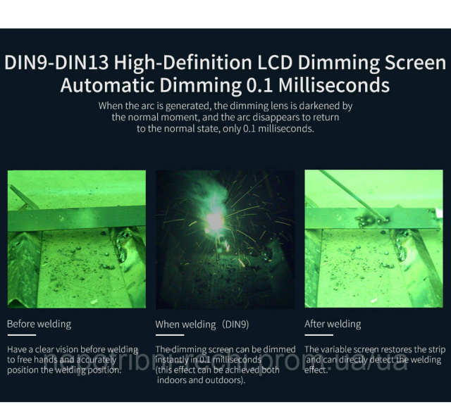 Лінзи виготовлені з високоякісного матеріалу. Велике оглядове вікно забезпечує чіткий та ширший огляд, а також зменшує втому очей. Швидкий час відгуку забезпечує кращий захист для зварювальників.